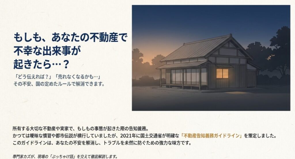 この記事を読めば、国が定めた不動産告知義務ガイドラインの明確な判断基準が分かり、トラブルを未然に防ぐ具体的な方法がしっかり理解できるはずですよ!